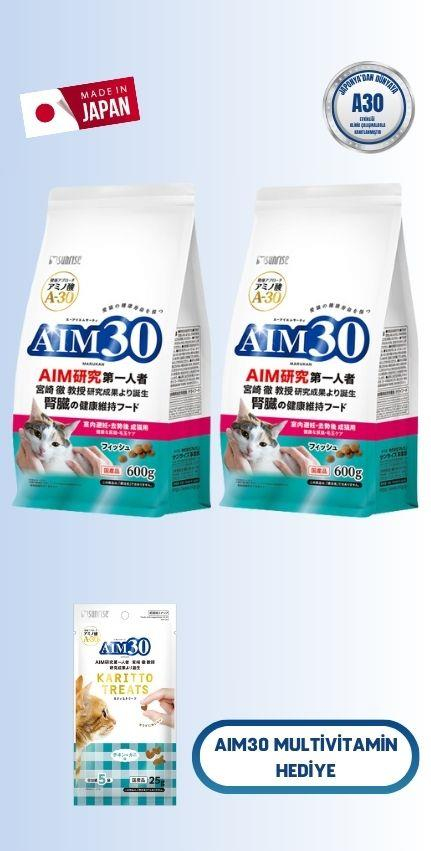 2'li AIM30 +11 YAŞLI KEDİ MAMASI BALIKLI, MULTİVİTAMİN HEDİYELİ