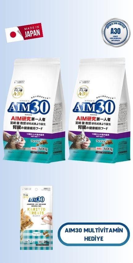 2'li AIM30 +15 YAŞLI KEDİ MAMASI BALIKLI, MULTİVİTAMİN HEDİYELİ